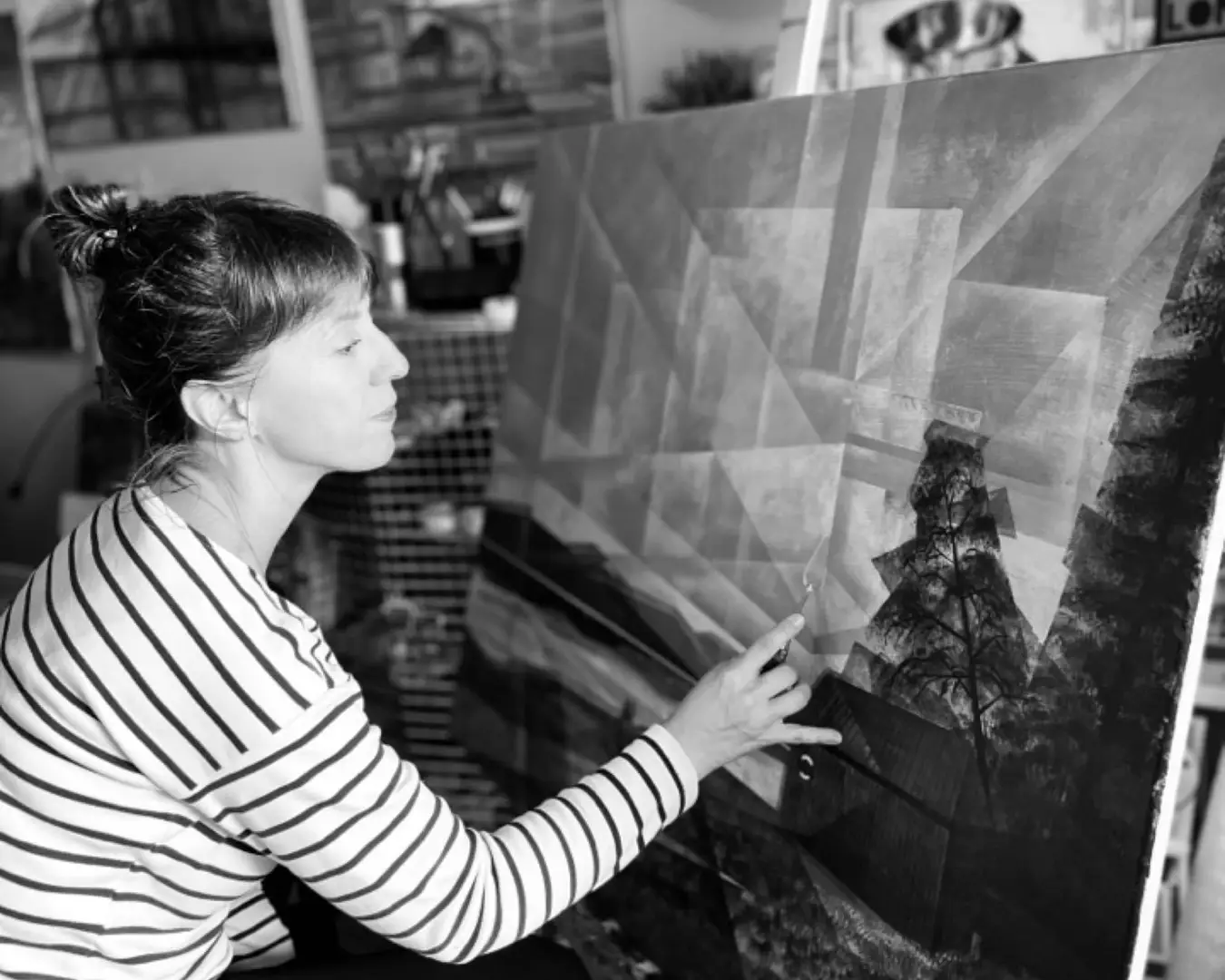 Veronika Varga har en unik strek med geometriske former og med en teknikk som kan minne om typisk Art Deco spraydekor.